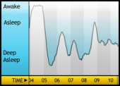 Sleep Cycle使っています…(写真2) iPhoneのタッチ画面の加速度メーターを利用して睡眠中のユーザーの動きをモニターし、 眠りの浅い時間がいつなのかを判断します。 いわゆるレム/ノンレム睡眠のバイオリズムを観察しているのです。