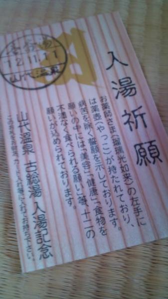 山代の総古湯では毎朝一番に入った人にお札を渡してるらしい。 ・・・LET'S TRY !