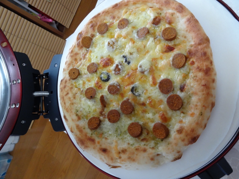先日買った石釜ピザ焼器、2日間続けて出動! オーブンレンジよりずっと早く、おいしく焼ける優れもの! 当たり!