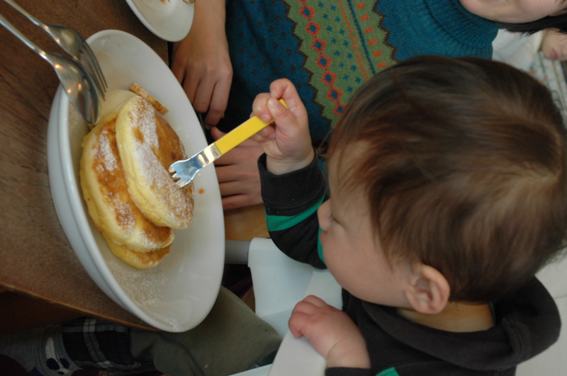 長時間待つかもしれないということで、ちゃんと家で朝食を食べてから出発。 10時に七里ヶ浜着。駅で降りた人の大多数が同じ方向に向かう。子連れは大きく遅れをとった。 お店に着いたらすでにすごい人。でも、ほとんど同じ電車を降りた人で予約に名前を告げるための行列だった。