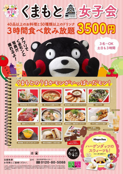 いいなあ、これ。 1人3,500円で40品以上のお料理と50種類以上のドリンクを3時間食べ飲み放題。 (前日までに大人の女性3名以上のご予約が対象。)