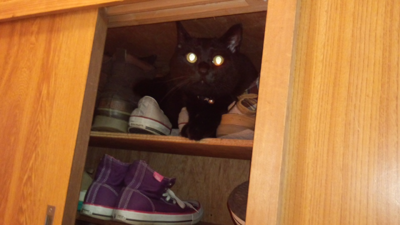 昨日は朝から、暑かった~ たぶん今日も蒸し暑いです。 靴箱、すずしいのかな?