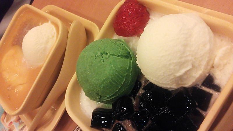 マンゴーたっぷりのね~。。。 私、あんまり得意じゃないんだ^^;。 昨日は、あまりの暑さに飛び込んだお店が「燕の巣」のデザート屋さんで、、、 いやぁ~、参った、参った。 (苦笑) 二件目のアイスでお口直し。 大体たくさんは要らない方なので、旦那さまがいつもシリヌグイです。 鎌倉だの北海道だの、どこも行列しています。