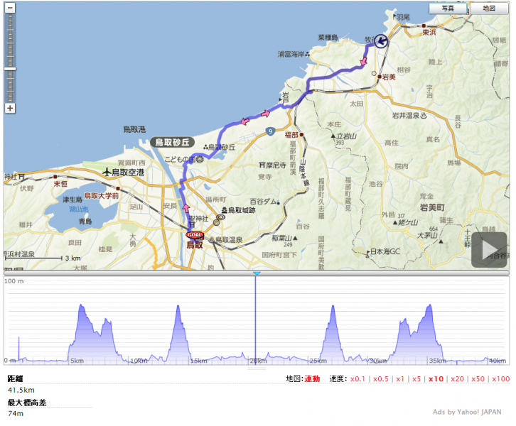 自転車で砂丘~浦富海岸↵ 晴れ【うき@さんの健康管理カラダカラノート】