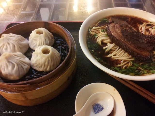 牛肉麺、小龍包を食べてたら突如スコールが!