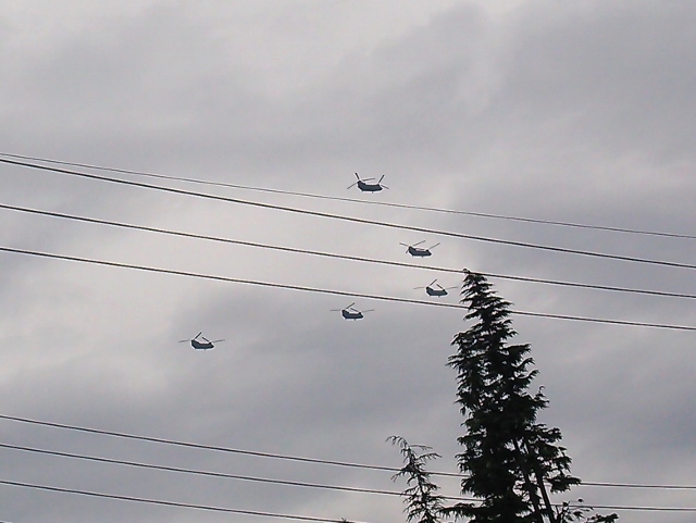 暑くもなく、寒くもなく、走りやすい季節になってきたな 気持ちよく公園内を回っているとバタバタバタ…ってうるさい ipod結構な音量で聞いてるけどそれでもうるさい! ふと空を見上げるとヘリコプターが数十機、編隊飛行している