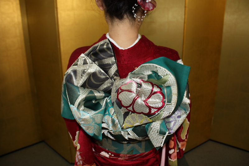 着物選びをしたときは、内心『ちょっと渋すぎない?』と思っていたのですが いざ、ちゃんと着付けてもらうととても素敵な感じに仕上がりました。 帯の色もとてもよくあっていますよね。 さすが美大生。