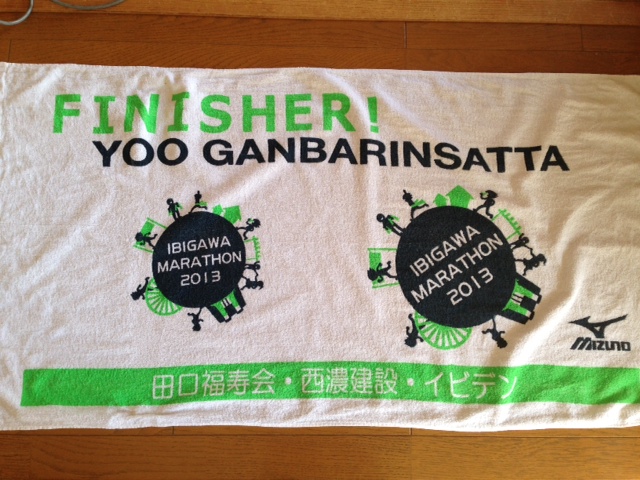 フィニッシャーズタオルの「ようがんばりんさった」っていいですねー ましゃさんが雨女じゃなくて、日曜ごとに雨がふってます~(>_<)