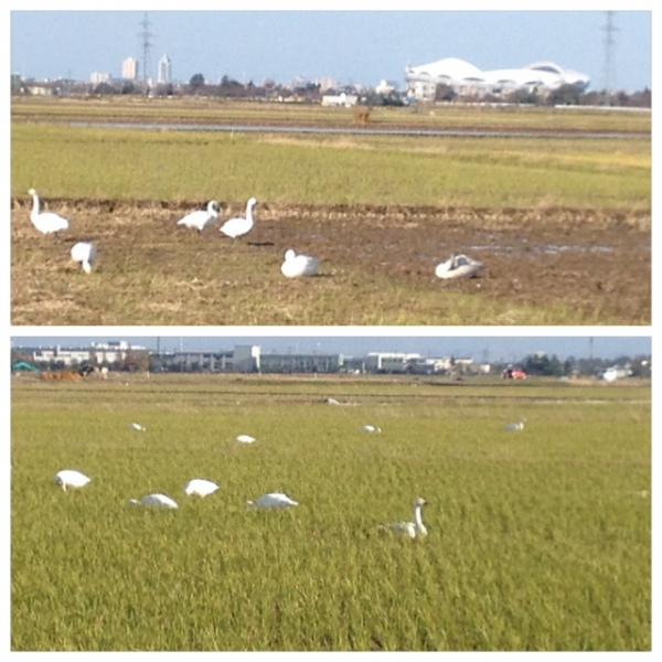 白鳥の後ろに見える白い建物は ビッグスワンと言う、サッカー場… ベッカムさんもプレーしたんですよ^ ^