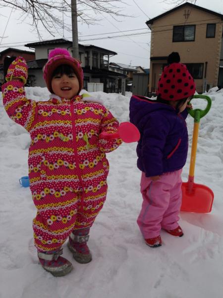 孫娘ちゃんたち、可愛いですね♪もっこもっこなおべべを着て❤ このぐらいのお年頃ってまだ「雪は楽しいモノ」って思うんですよね(*^-^*) 女の子は冬着もたくさん可愛いのがあってよいですよね。 小学高学年ごろになって雪かきさせられる年齢には「雪はもう嫌じゃーー」になりますね? こちらは今年は去年とおととしに比べると雪が少ないけど、岩手はどうかな?