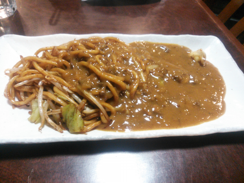 会津若松から2駅位は近いですね。 そう、カレーを焼きそばにかけただけです。(^_^;)