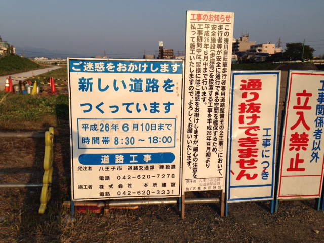 一通で車も通るし。 早く右側の道が通れるようになることを