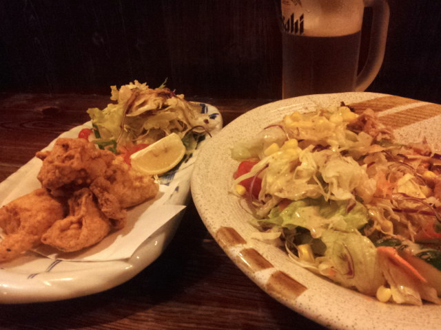 ツナサラダ+鶏の唐揚げを頼んだら、サラダだらけになってしまい、生中1杯だけのアルコールと合わせて健康的な晩飯でした。 女子卓球の準決勝が始まったので、さっさと退散!