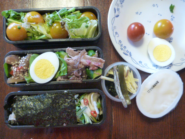 卵30・梅和豚肉入60・ピリ辛蒟牛蒡30