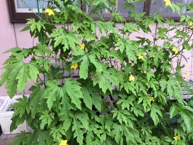 ゴーヤ…伸びました〜♪ グリーンカーテンに近づいてる(≧∇≦)