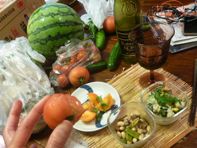 【20:00】…食べ始めたら玄関チャイム茨木の友から野菜が~(^^♪