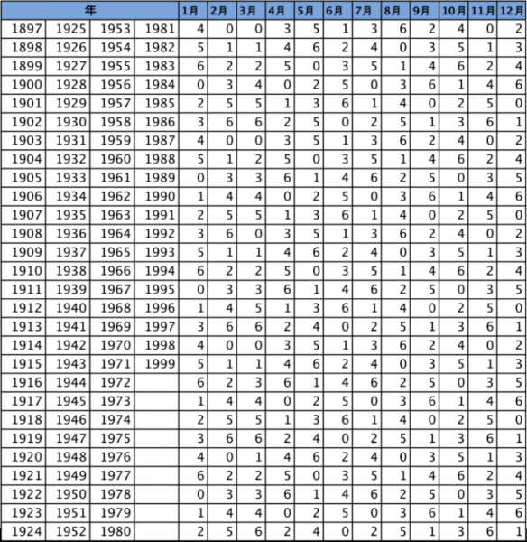 写真2と写真3で生まれた曜日が調べられる。 写真2で割り出した数字に21を足して、写真3で調べるんだって。