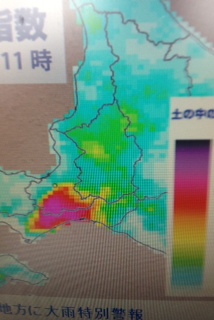 先ほど、札幌の取引先から電話があったけど~ 人口の約8割が避難勧告らしよ~ なんせ~大雨で、街の真ん中を流れている大きな川が氾濫し~ 身動きが取れないらしいよ~(--;