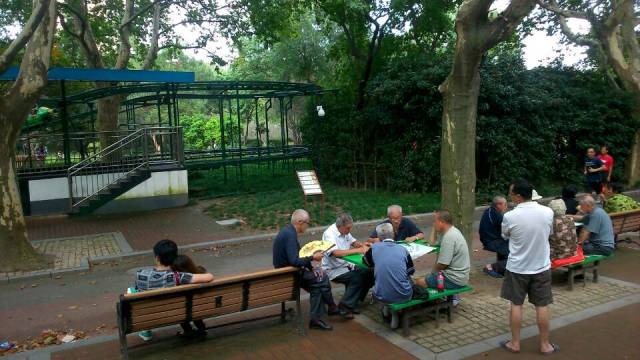 画像は公園のベンチで麻雀を楽しむ老人。 とっても楽しそう。 仲間に入れてもらいたいくらい。
