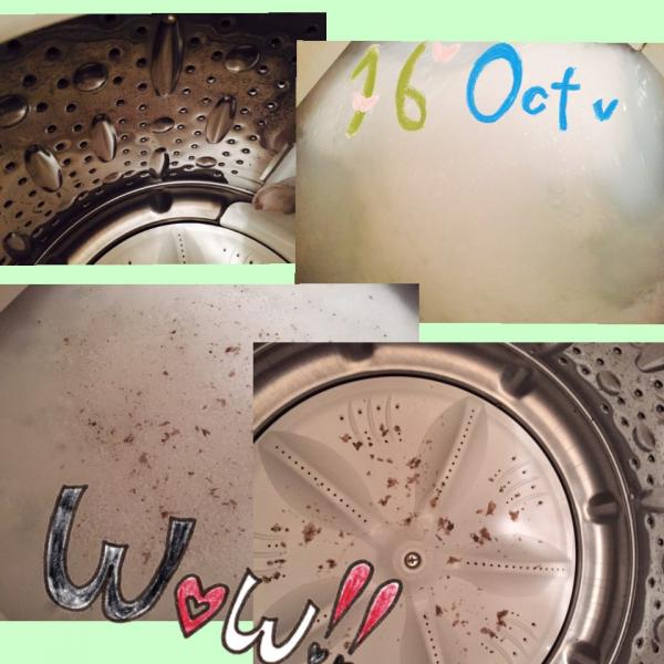 ④洗濯槽を洗浄… つけおきタイプのシャボン玉石けんので今つけおき中です。 特に汚れてないかもと思っていましたが、見れば見るほどおぞましいです笑