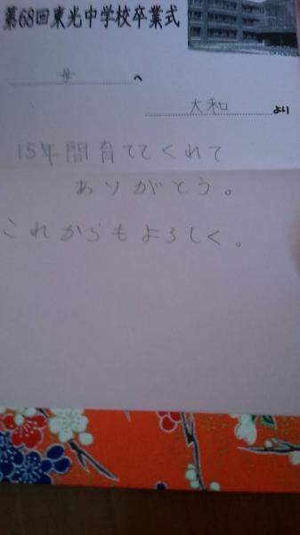息子ちゃん ご卒業おめでとうございます。 無事に義務教育終わりましたね。春からは高校生ですね。 meguさん その後体調はいかがですか? ウチの次男もあっさりしたもんでしたよ。 母は号泣だったのに・・・