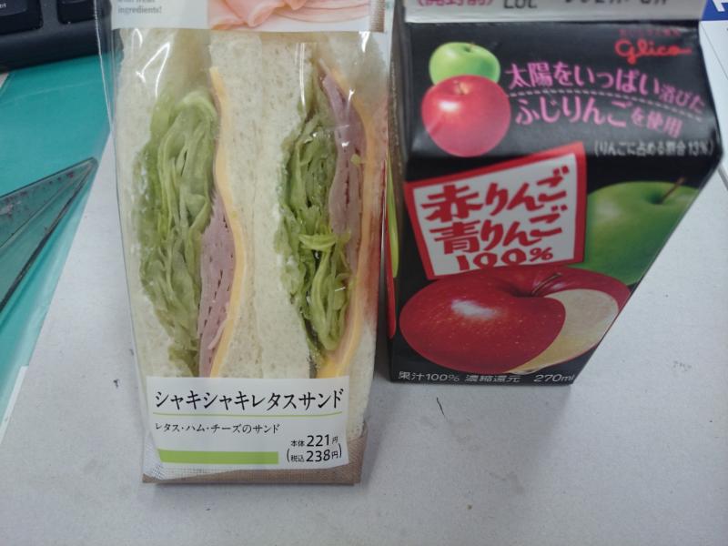 朝はサンドイッチとリンゴジュース。\r\nそれにヨーグルト。(^^)v