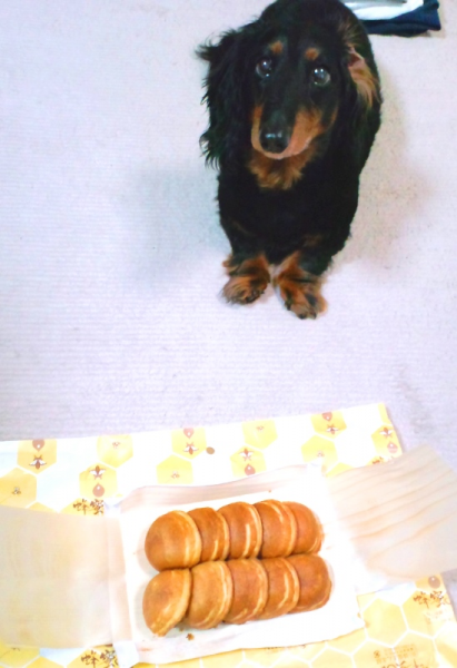 美味しいですよ~ 津の名物です。 これ お客さんの前で 機械で焼いていま~す。 RONは可哀想だけど 皮だけあげてます。 http://allsync.jp/eat/2014/10/hachimitu-man.html