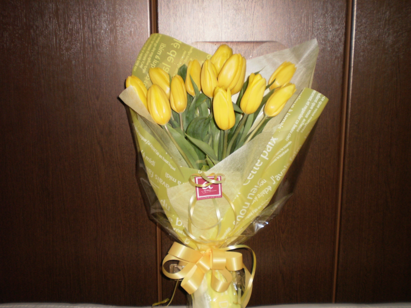 奥様 お誕生日おめでとうございます 昨日だったんですね、3月生まれですか^ - ^ 好きな色の花束を届けちゃうなんて 幸せな奥様だわぁ