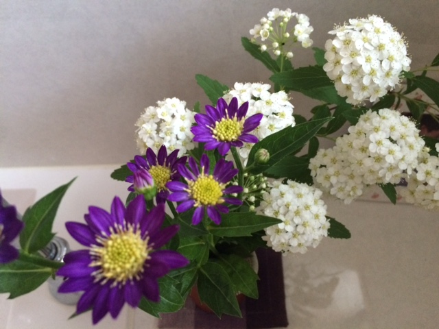この紫が、きれいだから 欲しいと言われて、差し上げたこともありました。 茎を切って、水にさしておくだけで 根が着くくらい 強い花です^^
