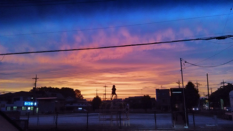 団地ともおの鎌倉景子・・・知らなかったので調べちゃったよ! 当たってる感、強し! 夕日があまりにも美しくて、たまたま車を止めたところが小学校の横で(公園だったのかな?)、その時3人の女の子がジャングルジムでひとりずつ順番に登って夕日を見ていたの。 その光景の微笑ましいこと。 思わず、写真におさめたよ(´∇`) 子供だけでこんな遅くまで遊んでいて、ちょっと心配だけど、日本の平和さを感じたよ。 そう、これはスマホ写真。 スマホと小っちゃいデジカメとおっきいデジカメ、使い分けてます(v^ー°)