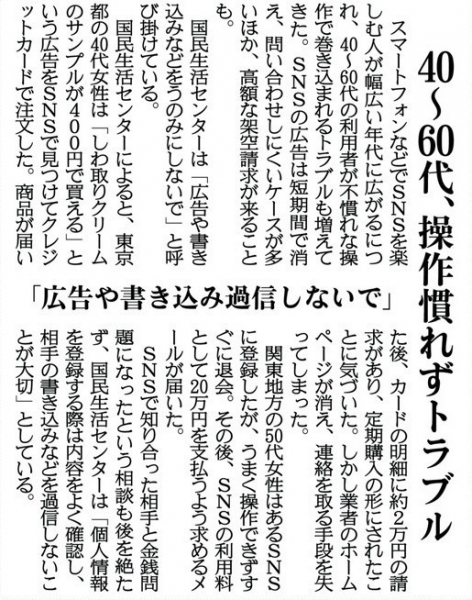 クレジットカードこわいのですね~~~ 私も何枚か持っていますが、気をつけなければいけません。 あ、ちなみに新聞にあったスマホの被害に関しては、私はガラケーなので心配なさそうです♪