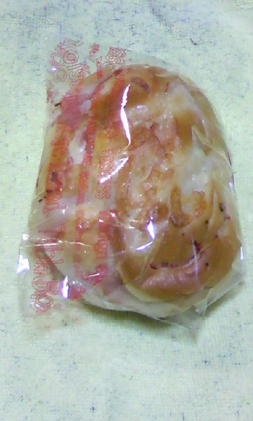 と、ぶりぶり怒りながら今日のパン(笑) 今日はもっちりハムチーズです。もちろんチン!していただきました。 ほんのり暖かく大変おいしかったです♪ 怒りもやや収まります♪