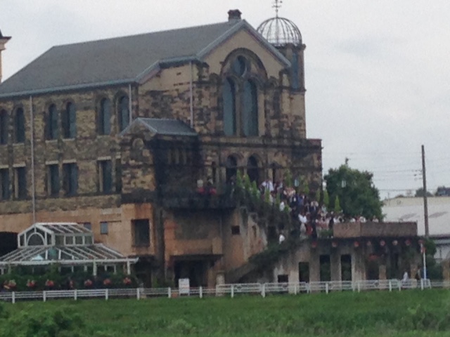 対岸のチャペルでは結婚式 雨があがって良かったですね!!