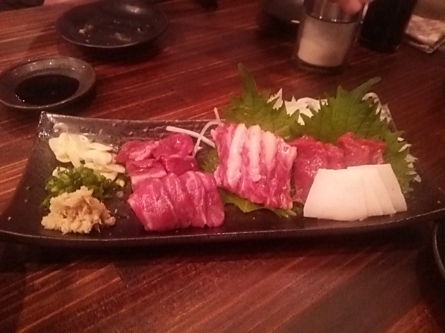 1軒目は馬肉の焼肉屋さん。 馬刺しは食べたことあるけど馬肉の焼肉は初めて。 高タンパク低カロリーでスゴイ人気らしく予約も なかなか取れないらしい。