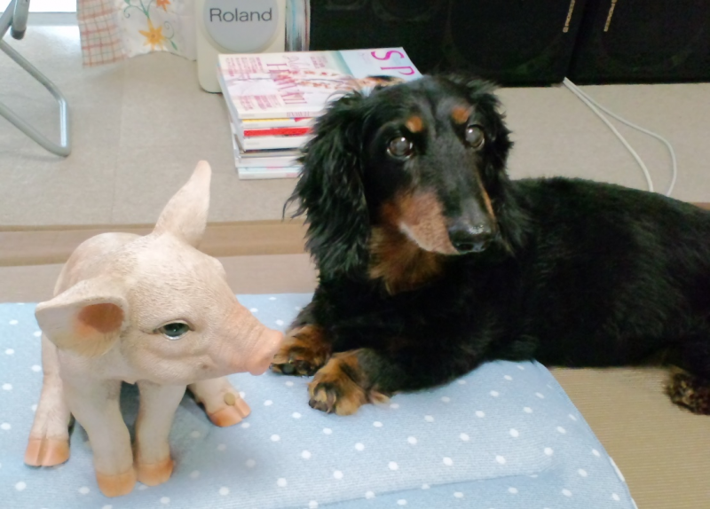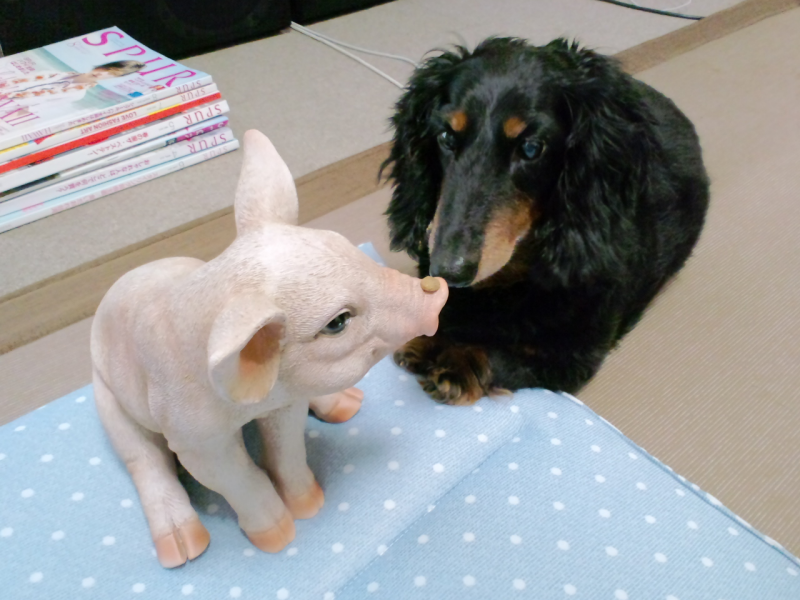 RON君~狂犬病予防接種は、大変なようですが~ 子豚ちゃんの面倒見は、イイですね~~(^^。
