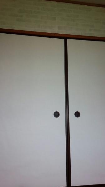 ひとりでも全然できますよ! 大きめに切って、貼って、はみ出たところをカッターで切れば完成! 襖に壁紙って…何故か今、流行ってるらしいです… 簡単だし、洋風にしたいから?なのか?