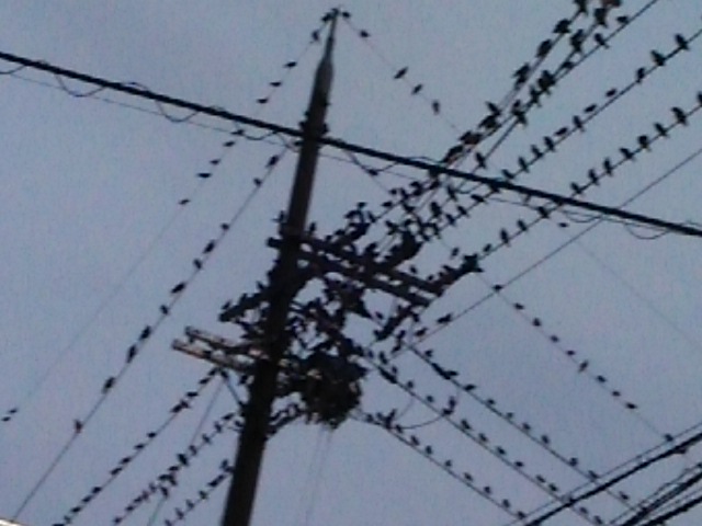 それ、私の街でも駅近くの電線に恐ろしい数の鳥が止まっていてずっと鳴いています。 何であそこに集まるのか謎です。
