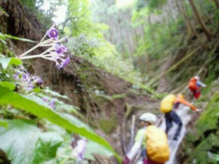 イワタバコの花満開、水量もあり天気に恵まれて、ワイワイと楽しい沢登りでした。