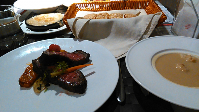 何グラムでしょう?160gくらいかな? セットもので前菜、スープ、お肉、デザートと選ぶんですが、お肉はオススメマークの付いてたやつにしました。