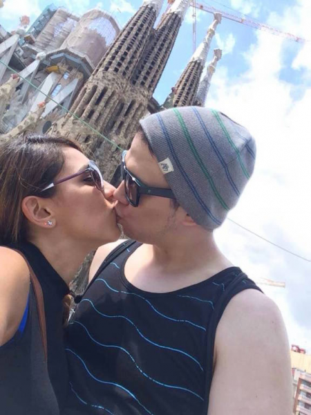 後ろに写っているのが、ガウディの、何って言ったっけ?