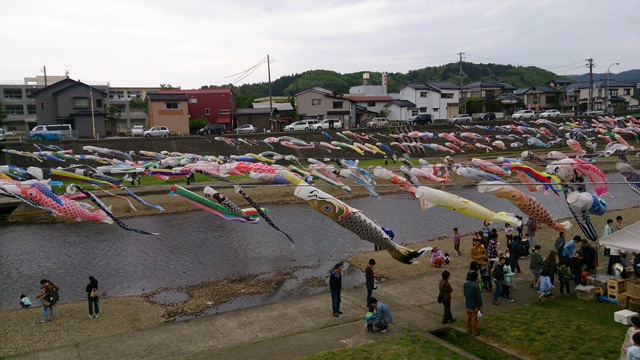 孫No.1が朝から、離れず… 恒例の真っ裸での、測定ならず^^; 車2台に分乗して、大人6人、3歳児、1歳児。 美味しいジェラートのお店で、1歳児以外 全員の支払いを済ませ… 川を挟んでたなびく鯉のぼりを見学。 地元テレビ局が撮影中だったので 親バカ息子達は、子供を抱いて、ウロチョロしてたけど 夕方のニュースでは、映ってなかった( ̄▽ ̄) スノウピーク、アウトドアが好きな方ならご存知かな? 初めて行ってみたけど、大盛況。 結構なお値段なのに、好きな方が多いんですね〜