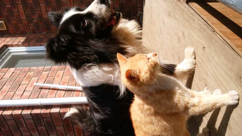 現在 無職で休職中の私ですが、この所、不思議と私の周りに色々な生き物が集まってくる。 春先の雀の子育てに始まって、最近は野良猫が家の前に陣取っており、当初は警戒してなかなか近寄らなかったのに、今ではこの有様!! うちの犬は猫に対しては相当恨みがあるらしく(過去に近くの飼い猫3匹に集団でリンチされた事があるため)どんなに小さな猫でも異常な位 にうなり声をあげて追いかけようとする行動をとっていたのに、1日近く時間を過ごした程度で今ではすっかり仲良しになったみたいです。 不思議!!! 確かにこの猫はどうやらメス猫のようで、若い猫のように見えるが飼い猫ではないようだ。 それでも人に対する警戒心はあまりないようで、最初は声をかけてみると逃げ出すのではなく、警戒しながらも近づくために仲良くしたい気持ちがあるように見受けられた。 最近はゲス野郎達への怒りばかりで殺伐とした気持ちにばかりなっていたが、やはりゲス野郎への非難よりももっと心が安らぐ気持ちにさせてくれる野良ネコの方がよほど世間に貢献しているみたい。 今度はどんな生き物が寄ってくるのやら! 狸?、キツネ?、まさか熊だけは勘弁して欲しい。