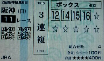 この4つの背番号の馬が、どんな組み合わせでも1着と2着に入れば、「馬連」が当たったと言う事ですし、どんな組み合わせでも、1着2着3着すれば、「3連複」が当たったと言う事になりますので、15時40分にお時間あれば、テレビつけてみてください。