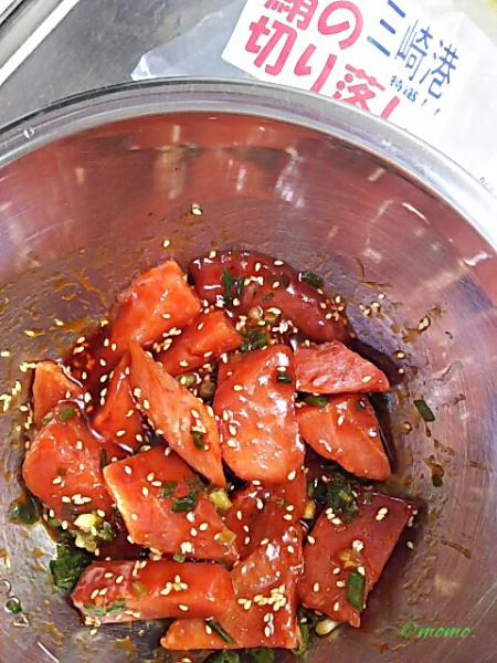 夕飯は、「マツコの知らない世界」でお相撲さんが作っていたマグロの漬けにチャレンジ。 (旦那さん作)