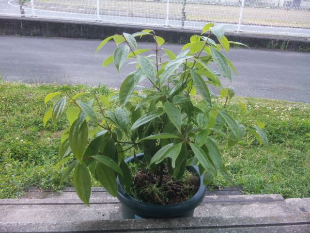 小さい方の肉桂の木がこんなに茂りました。 大きい方は、全然駄目です、幹は太いけど 新芽の青葉が全部萎れました、また、新芽が出かかってますけど。