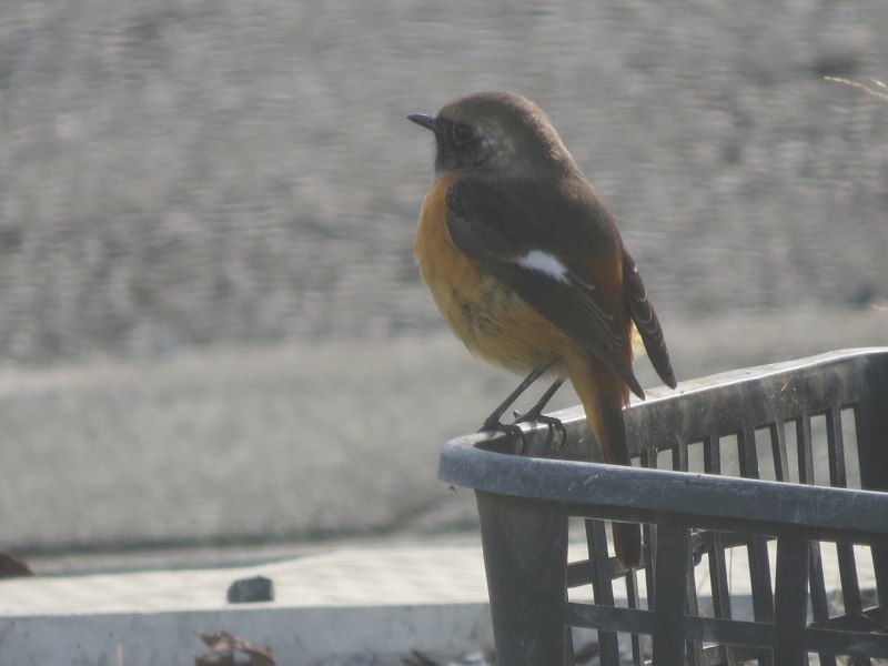 だいぶ前から鳴き声だけは聞いていたのだけど、やっとこ今日ご本人様と会うことができた。 ジョウビタキの雄。