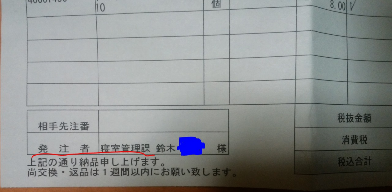 取り先に依頼していた部品を引き取りに行った帰りに 何となく伝票を確認していた時の一コマです。 何だこりゃ! 品質管理課でなくて寝室管理課 ???? 一瞬 とうとうオラも漢字が読めなくなるくらいにボケが進んでしまったかと思うのでした。