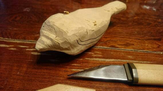 家を出る前、注文していたバードカービングキットが送られてきたので、百均とホームセンターで道具を買って帰った。小刀や彫刻刀、ペイントの材料など2000円ほど使った。 カービングキットは大まかに切ってくれてあるのだが、どうしても鳥の形にならない。おかしいなぁと思いながらも2時間彫って、ようやく気がついた。上下反対向きで彫っていたのだった。因みにこれはヤマガラになる予定。遠い道のりになりそう。