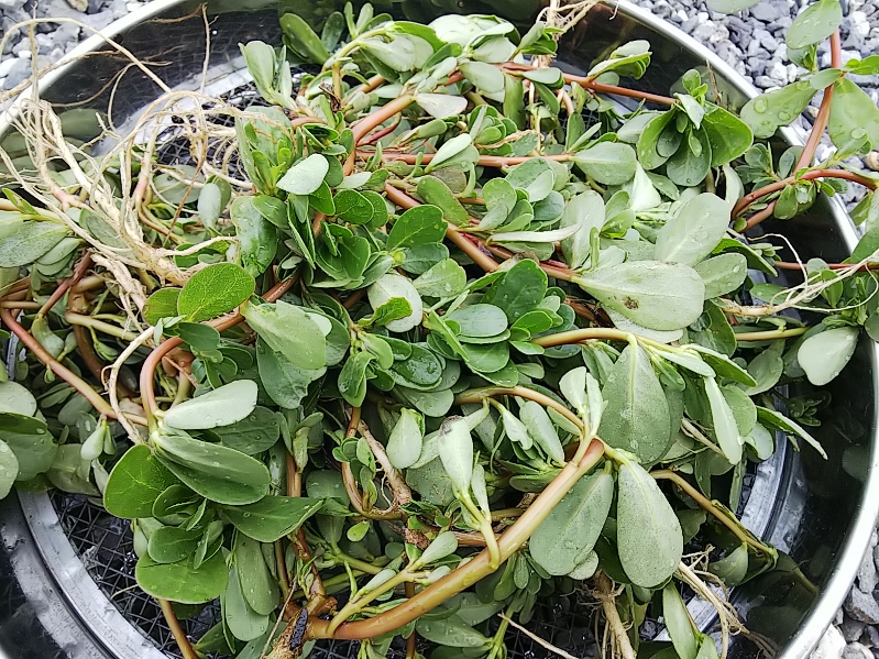 スベリヒユ、ほっとくとドンドン増えてエライことになる強い草です。 根っこがあまり強くないので、抜きやすいからまだラクですが。 しばらく青菜類買わないで、これでいいイケそう(^o^) ホーホケキョの犯人はいったい誰なんだ(・・?