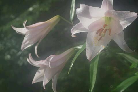 先月からカラーになったライブカメラに、折角なので午後1時半収まる。下山は文殊尾根。入ってすぐにギンリョウソウ。出来てまだ新しい感じだ。雨に濡れた白い色が神々しい。結構例年より数が多いようだ。目玉親父もひとつ見て満足、そのままイナモリソウ目当てで直進してババ谷へ。イナモリソウは高度が高いところは盛期が過ぎており、低いところほど新しく開花していた。 国道へ出て百ヶ辻へ向かうと、すぐにササユリが開花していた。丁度雲が途切れ、雨露に濡れた花びらに太陽光が当たって美しかった。